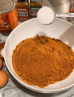 7. Melt your stick of butter in the microwave and add it in to the crushed graham crackers along with your sugar.